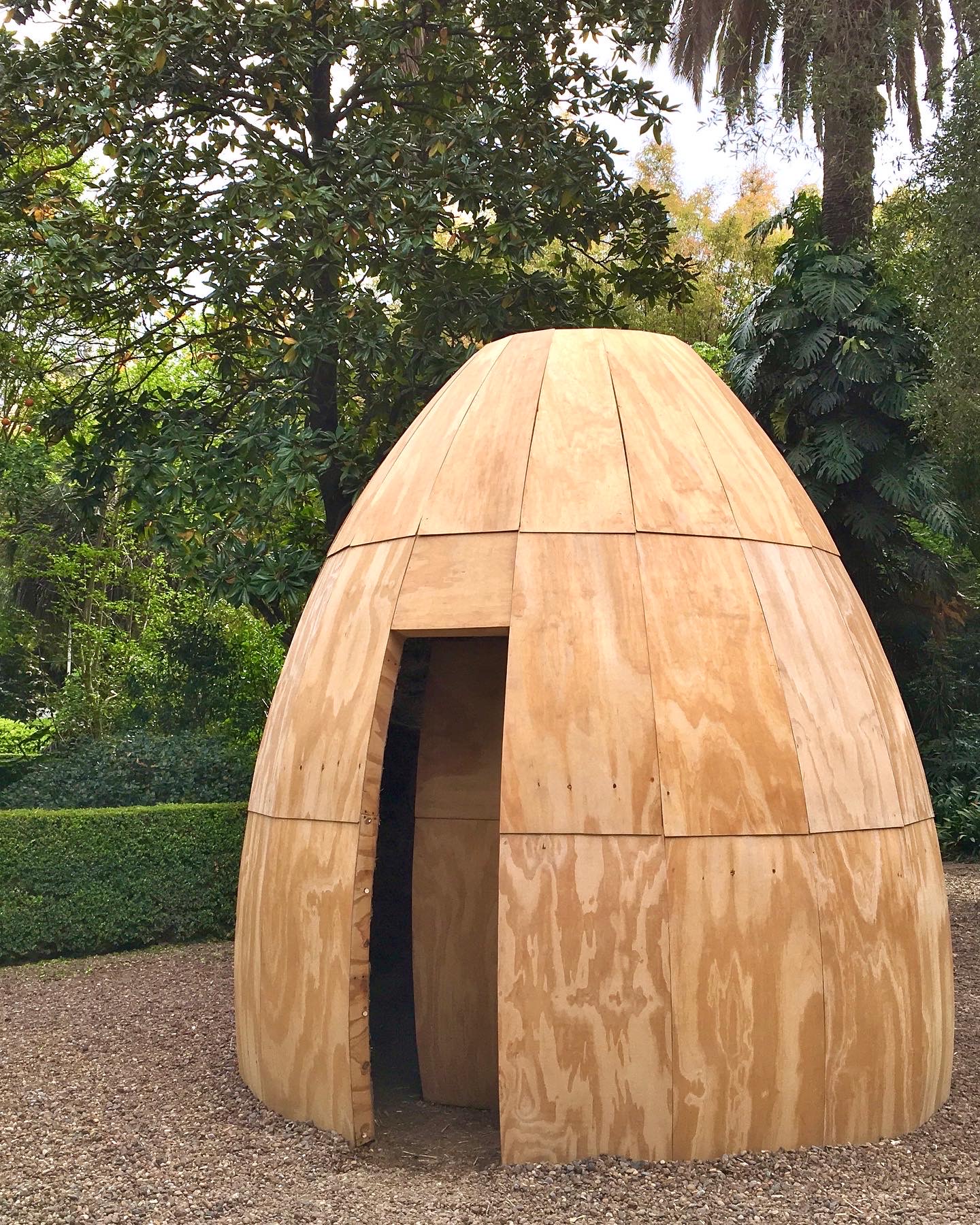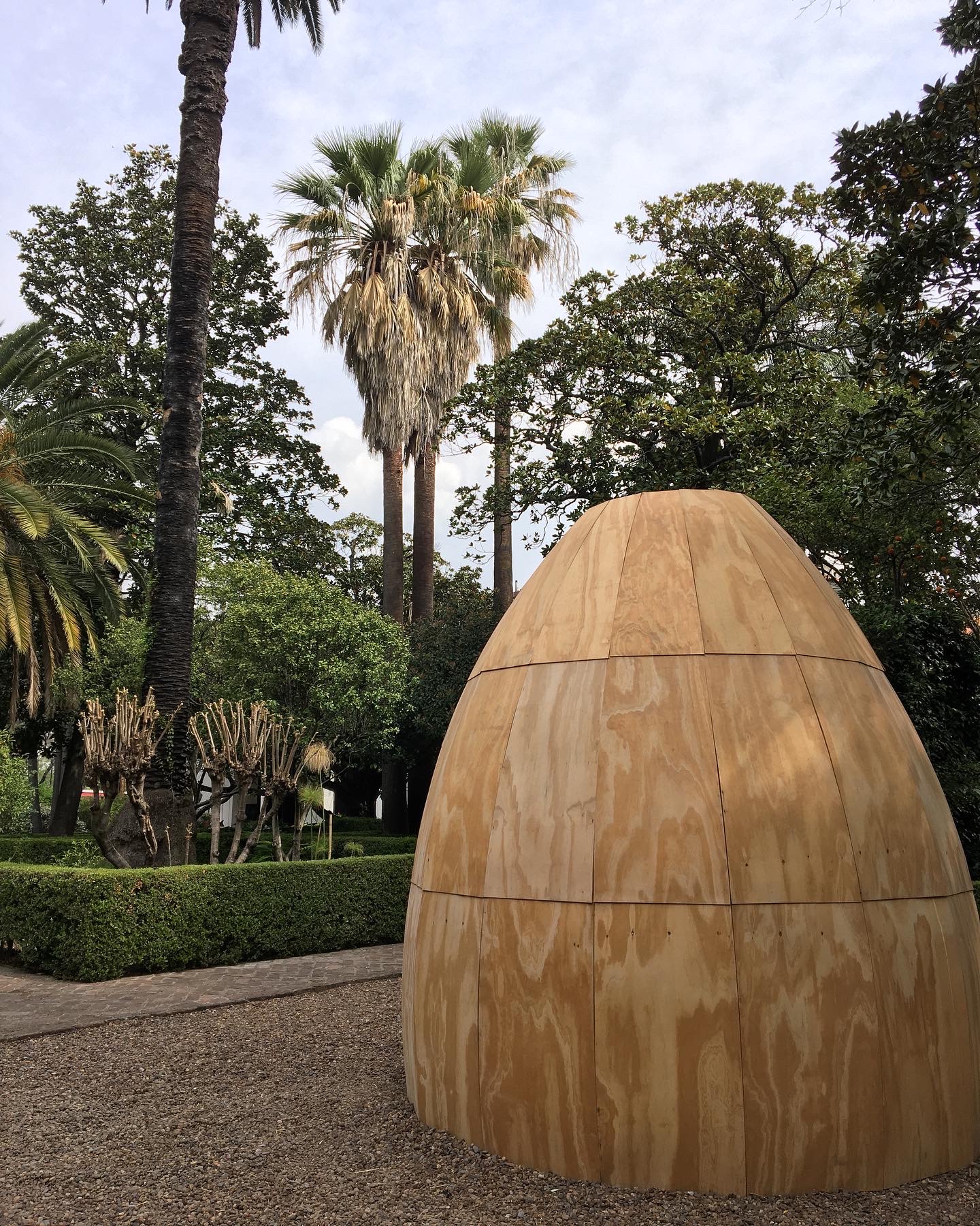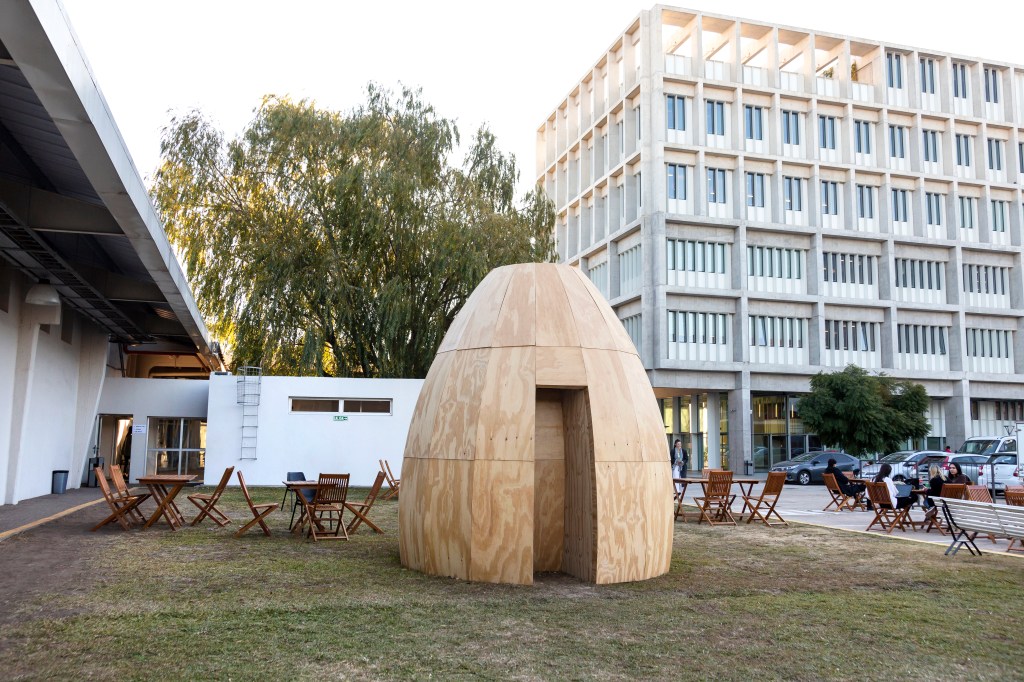 The work Y los ritos son en el tiempo lo que la morada es en el espacio (And rites are to time what dwellings are to space) is presented as a body in transit, articulating a fundamental dialectic between the natural and the constructed. Its intentionally ambiguous design—oscillating between the forms of an architectural dome, a telluric volcano, and an organic tuber—destabilises the viewer’s gaze. This formal ambiguity turns the object not only into a sculptural piece, but also into an area of perceptual experimentation that demands a constant renegotiation of categorisation.