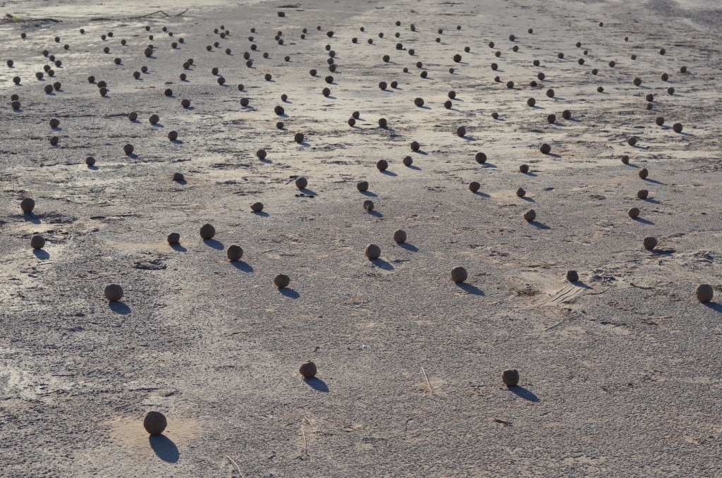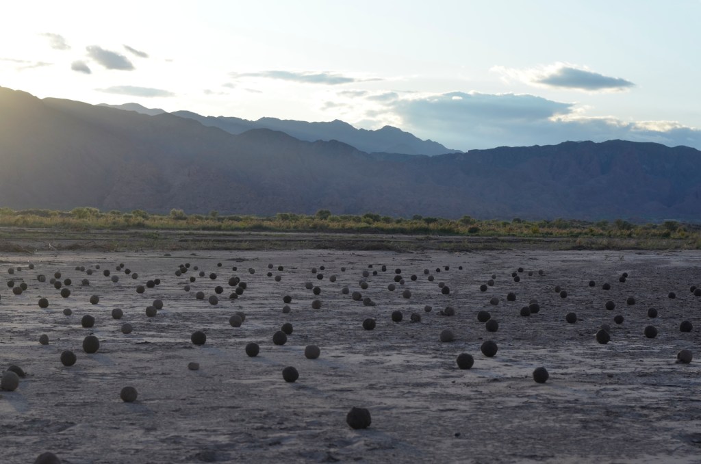 La obra propone una lectura del paisaje que va más allá de lo meramente natural. El paisaje es conceptualizado como un territorio en permanente negociación, un entramado de memorias, heridas y devenires políticos y ecológicos. Frente a esta realidad, la creación de las esferas constituye una acción de restitución activa, un intento poético de devolver orden y forma a la materia dispersa.
