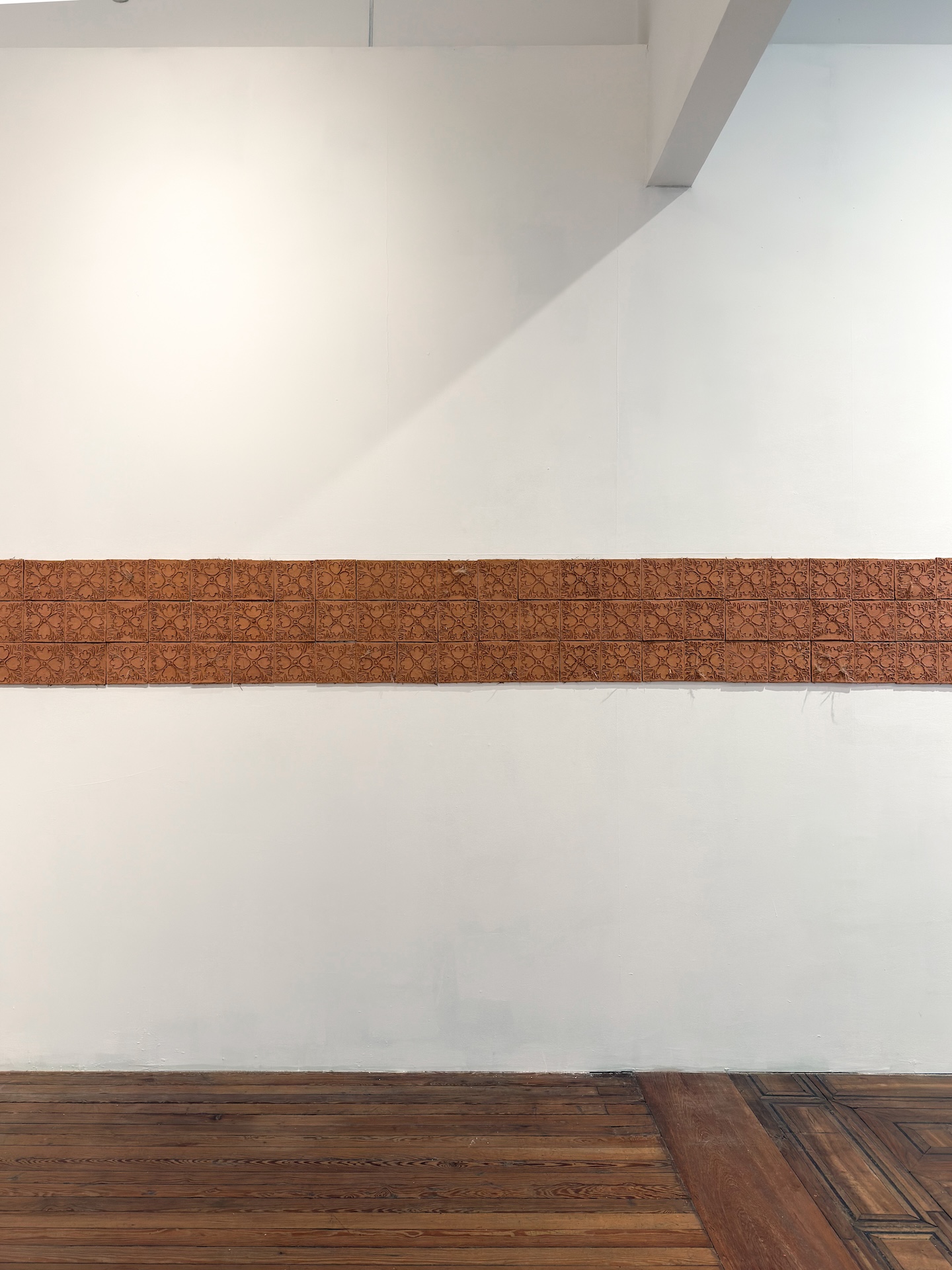Opacos y con una engañosa apariencia frágil, los azulejos de Nicolás Rodríguez invitan a ser observados sin apuro, pero también a imaginarlos bajo los pies o sobre la cabeza, como un envolvente recordatorio de las marcas que la historia ha dejado sobre nuestra tierra.